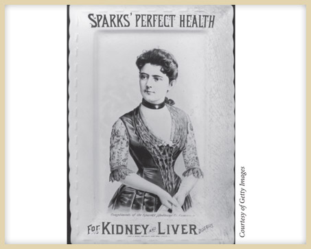 First Lady Frances Folsom Cleveland in a medicine ad – the unauthorized use of her image infuriated the president.
